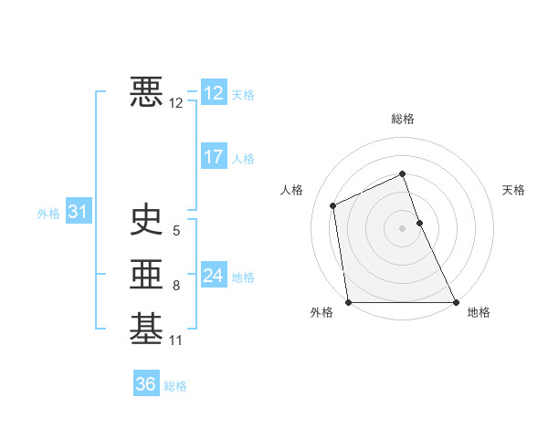 悪 史亜基さんを姓名の画数から五運を鑑定