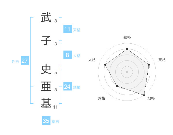 武子 史亜基さんの総格は35画の4点!