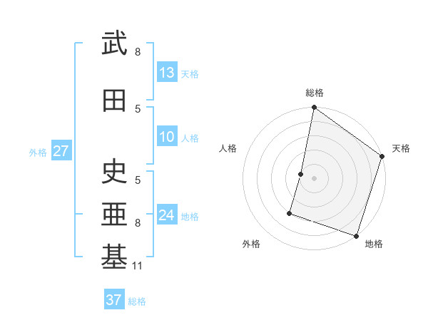 武田 史亜基さんの総格は37画の5点!