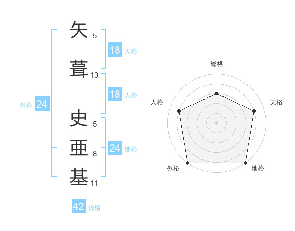 矢葺 史亜基さんの地格は24画の5点!
