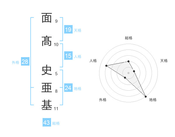 面髙 史亜基さんの総格は43画の2点!