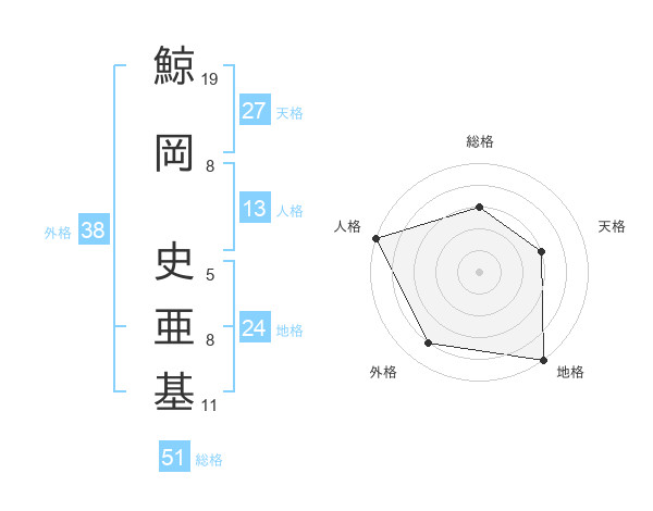 鯨岡 史亜基さんの総格は51画の3点!