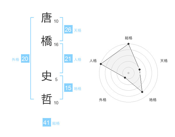 唐橋 史哲さんを姓名の画数から五運を鑑定