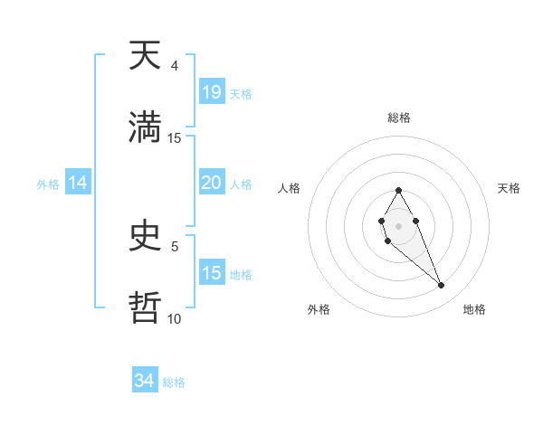 天満 史哲さんの総格は34画の2点!