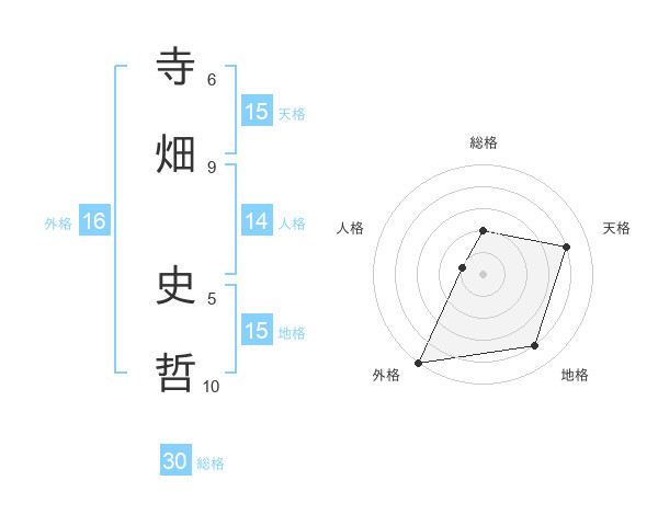 寺畑 史哲さんの天格は15画の4点!
