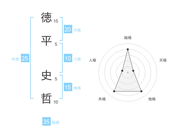 徳平 史哲さんの総格は35画の4点!