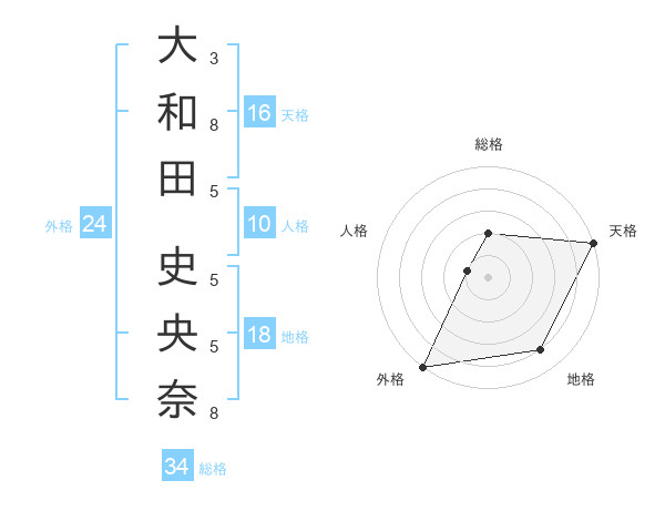 大和田 史央奈さんを姓名の画数から五運を鑑定