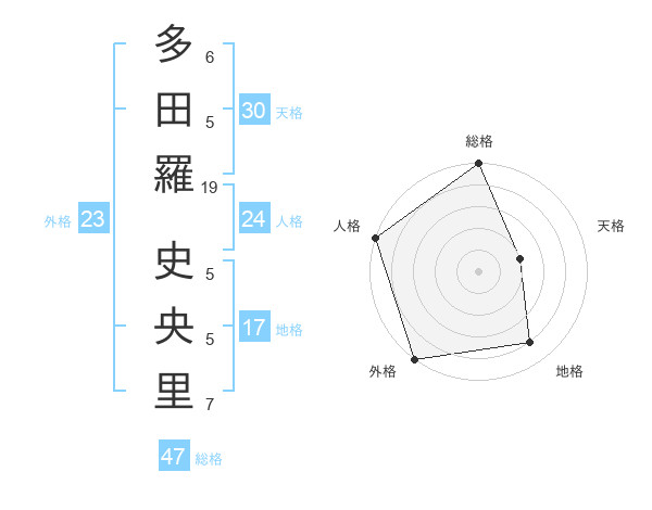 多田羅 史央里さんの総格は47画の5点