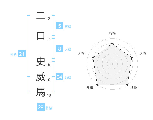 二口 史威馬さんの地格は24画の5点!