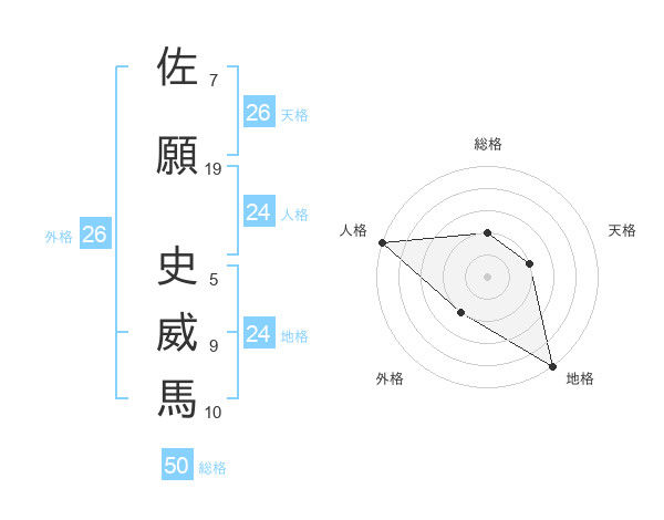 佐願 史威馬さんの総格は50画の2点!