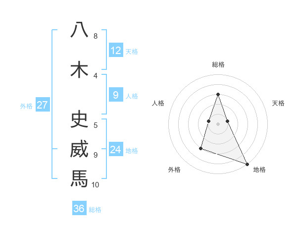 八木 史威馬さんの天格は12画の1点!