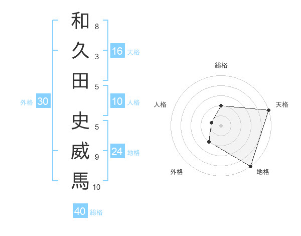 和久田 史威馬さんを姓名の画数から五運を鑑定