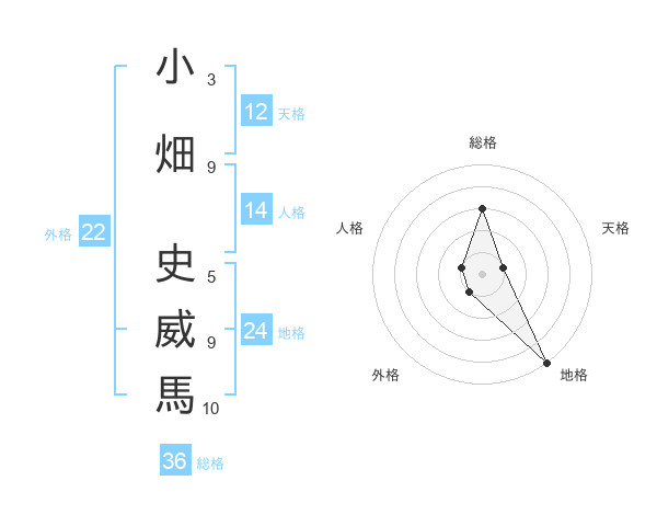 小畑 史威馬さんを姓名の画数から五運を鑑定
