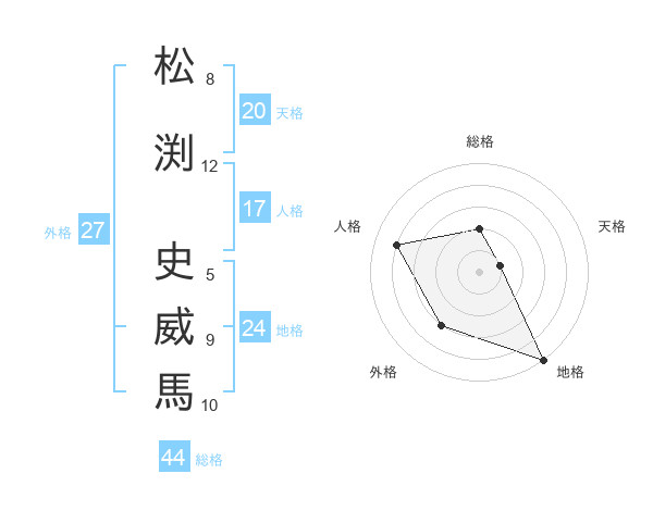 松渕 史威馬さんを姓名の画数から五運を鑑定