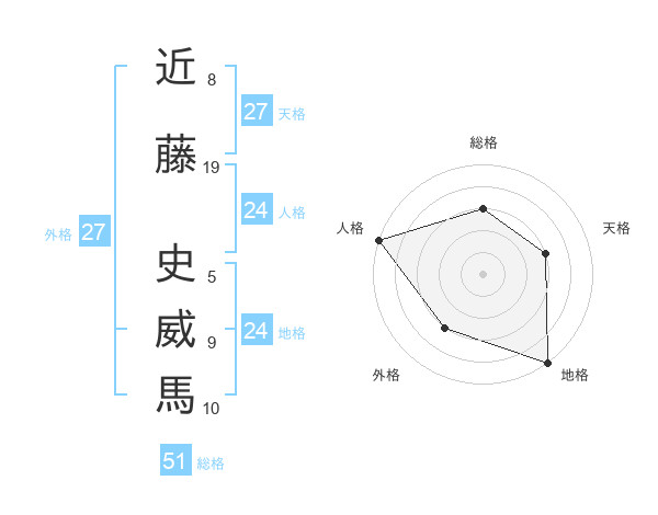近藤 史威馬さんを姓名の画数から五運を鑑定
