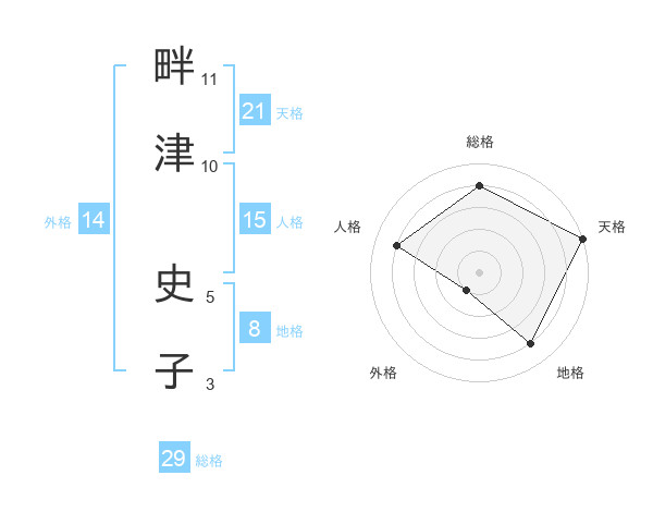 畔津 史子さんの総格は29画の4点!