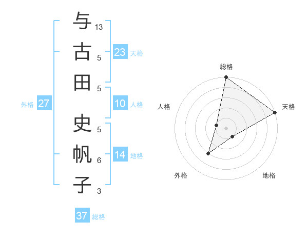与古田 史帆子さんを姓名の画数から五運を鑑定