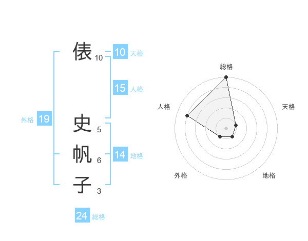 俵 史帆子さんの総格は24画の5点!