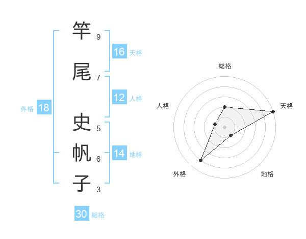 竿尾 史帆子さんを姓名の画数から五運を鑑定