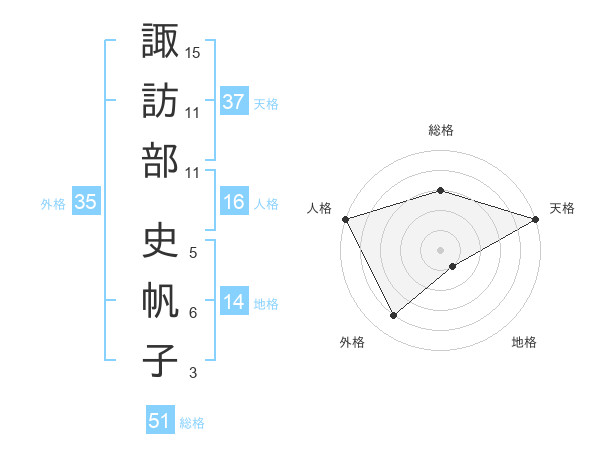 諏訪部 史帆子さんを姓名の画数から五運を鑑定