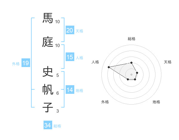 馬庭 史帆子さんを姓名の画数から五運を鑑定