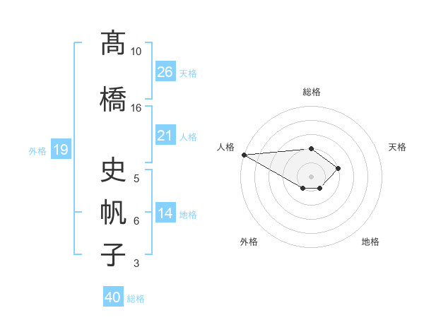 髙橋 史帆子さんの外格は19画の1点!