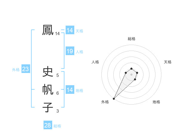鳳 史帆子さんの外格は23画の5点!