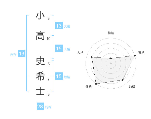 小高 史希士さんの天格は13画の5点!