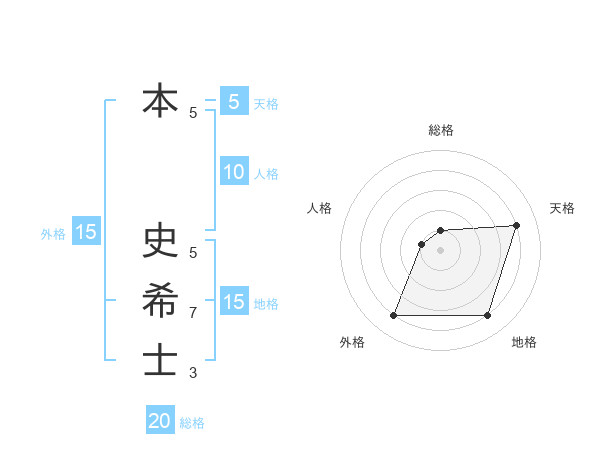 本 史希士さんの天格は5画の4点!