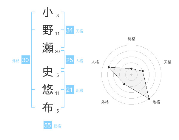 小野瀬 史悠布さんを姓名の画数から五運を鑑定