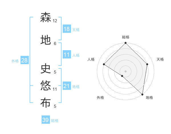 森地 史悠布さんを姓名の画数から五運を鑑定