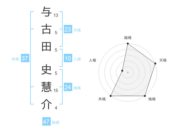 与古田 史慧介さんを姓名の画数から五運を鑑定