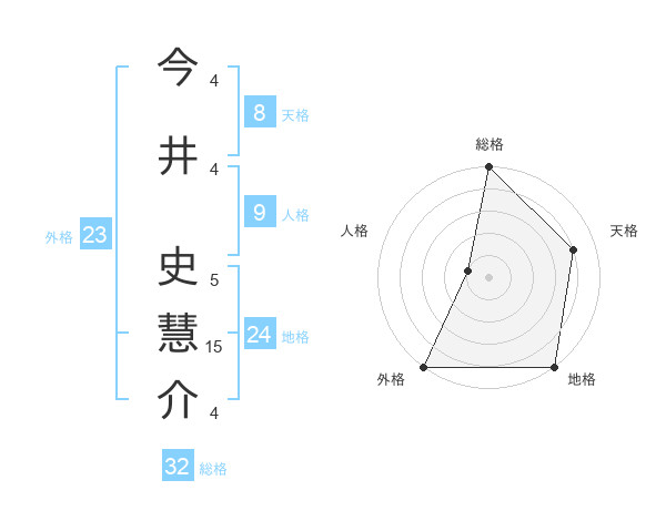 今井 史慧介さんを姓名の画数から五運を鑑定