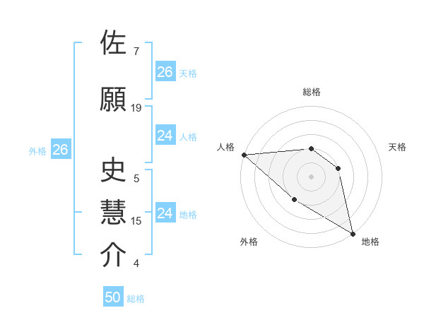 佐願 史慧介さんの総格は50画の2点!