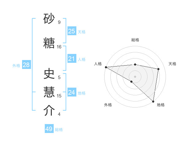 砂糖 史慧介さんの地格は24画の5点!
