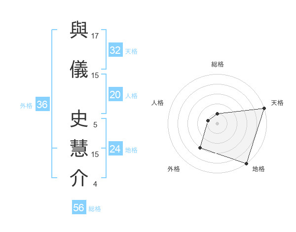 與儀 史慧介さんの天格は32画の5点!