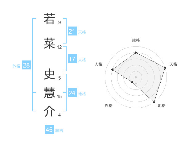 若菜 史慧介さんの総格は45画の4点!