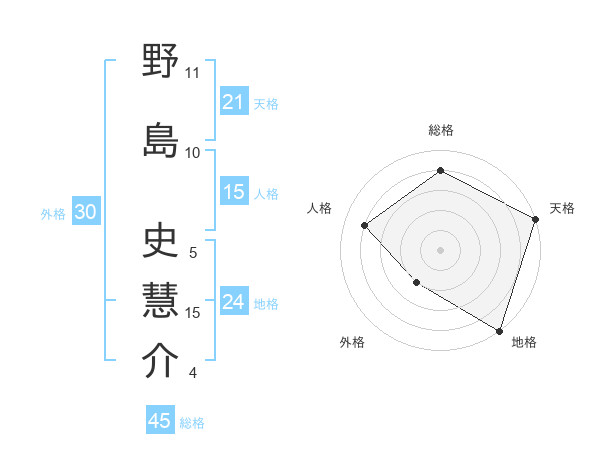 野島 史慧介さんを姓名の画数から五運を鑑定