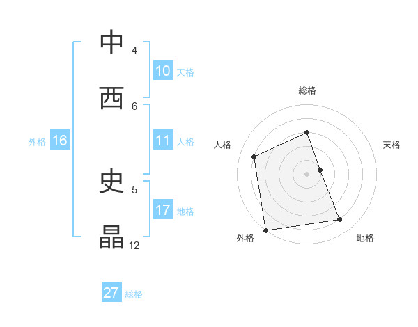 中西 史晶さんの総格は27画の3点!