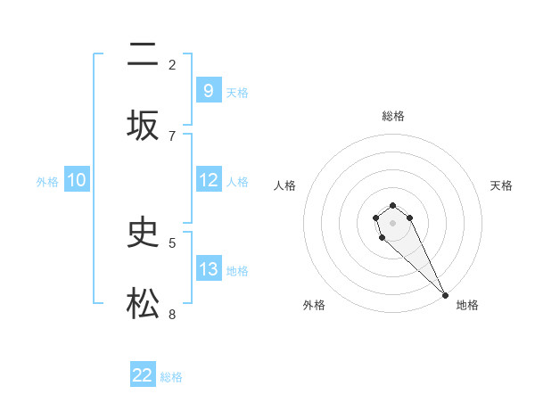 二坂 史松さんの総格は22画の1点!