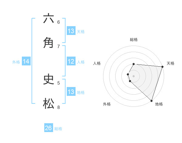 六角 史松さんの天格は13画の5点!