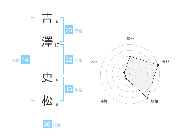 吉澤 史松さんの天格は23画の5点!