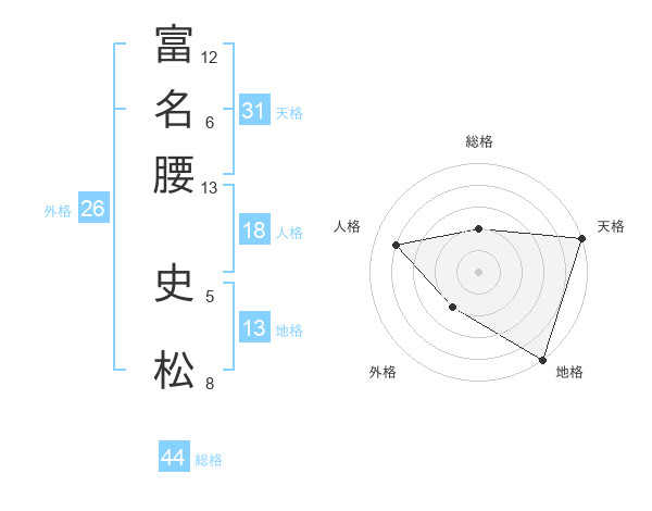 富名腰 史松さんの地格は13画の5点!