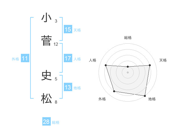 小菅 史松さんの総格は28画の1点!