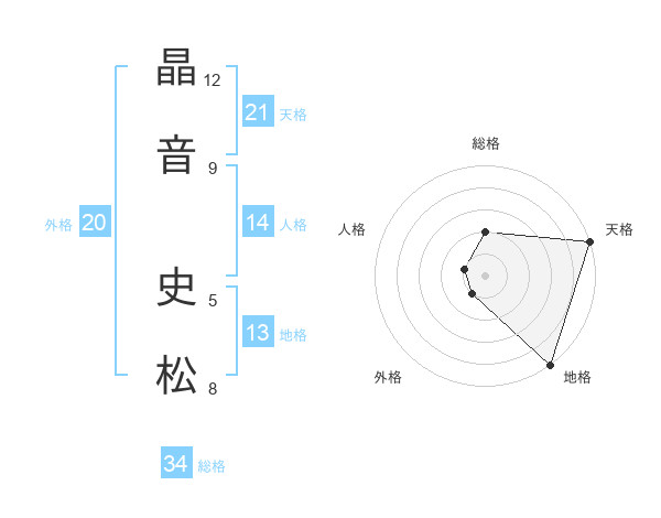 晶音 史松さんの天格は21画の5点!