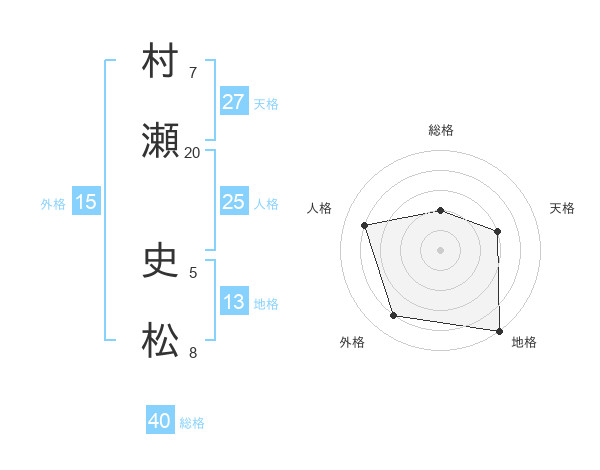 村瀬 史松さんの総格は40画の2点!