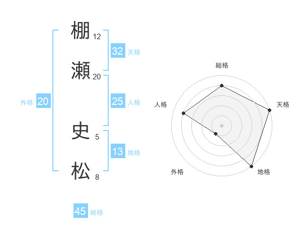 棚瀬 史松さんの総格は45画の4点!