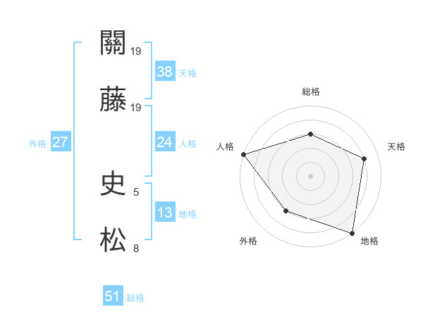 關藤 史松さんの総格は51画の3点!
