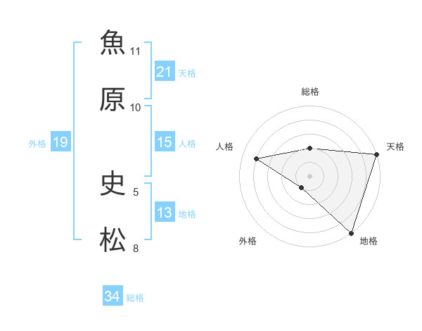 魚原 史松さんの天格は21画の5点!