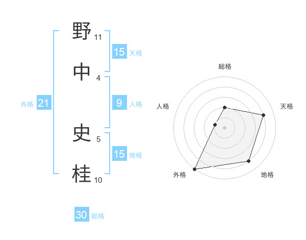野中 史桂さんを姓名の画数から五運を鑑定